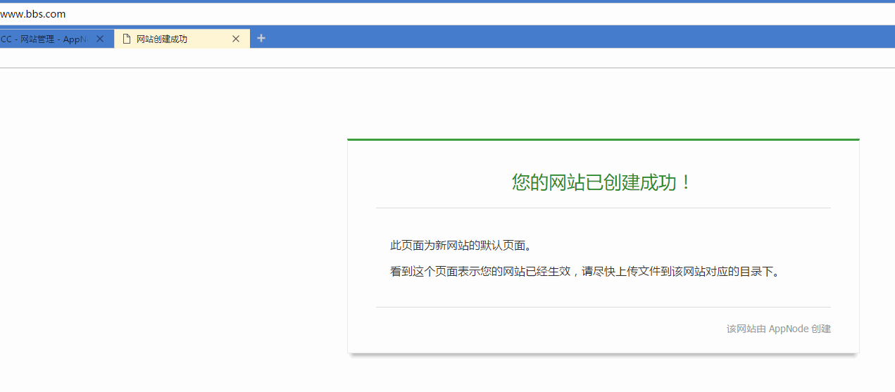 进入网站管理默认页面,下面我们就要按照APPNODE的树形图指示去一步一步建立我们的Discuz论坛网站了