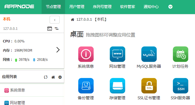 AppNode作为一款国产的VPS控制面板,无论是在功能上还是在易用上都是非常不错的,类似于宝塔面板那样先安装面板然后在后台安装Nginx、PHP等建站环境,应用市场也支持WP、DZ等热门程序一键安装,特别适合新手朋友操作。