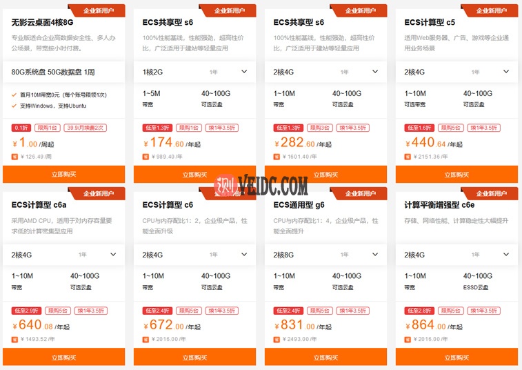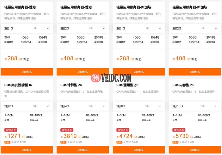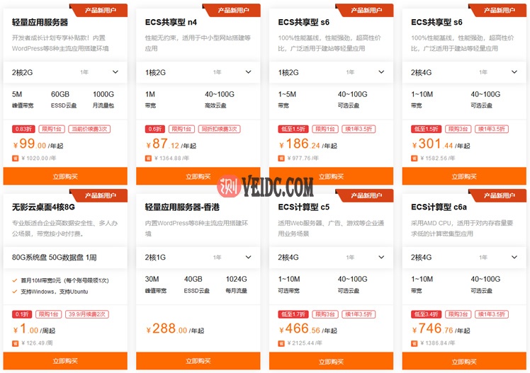 我们可以看到轻量服务器低至年付99元,ECS云服务器低至年87元。