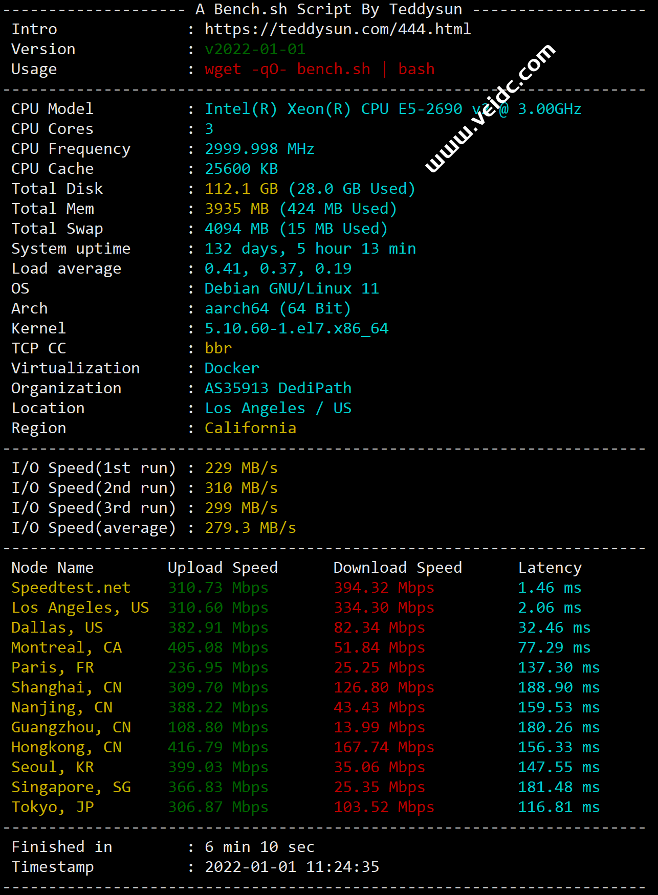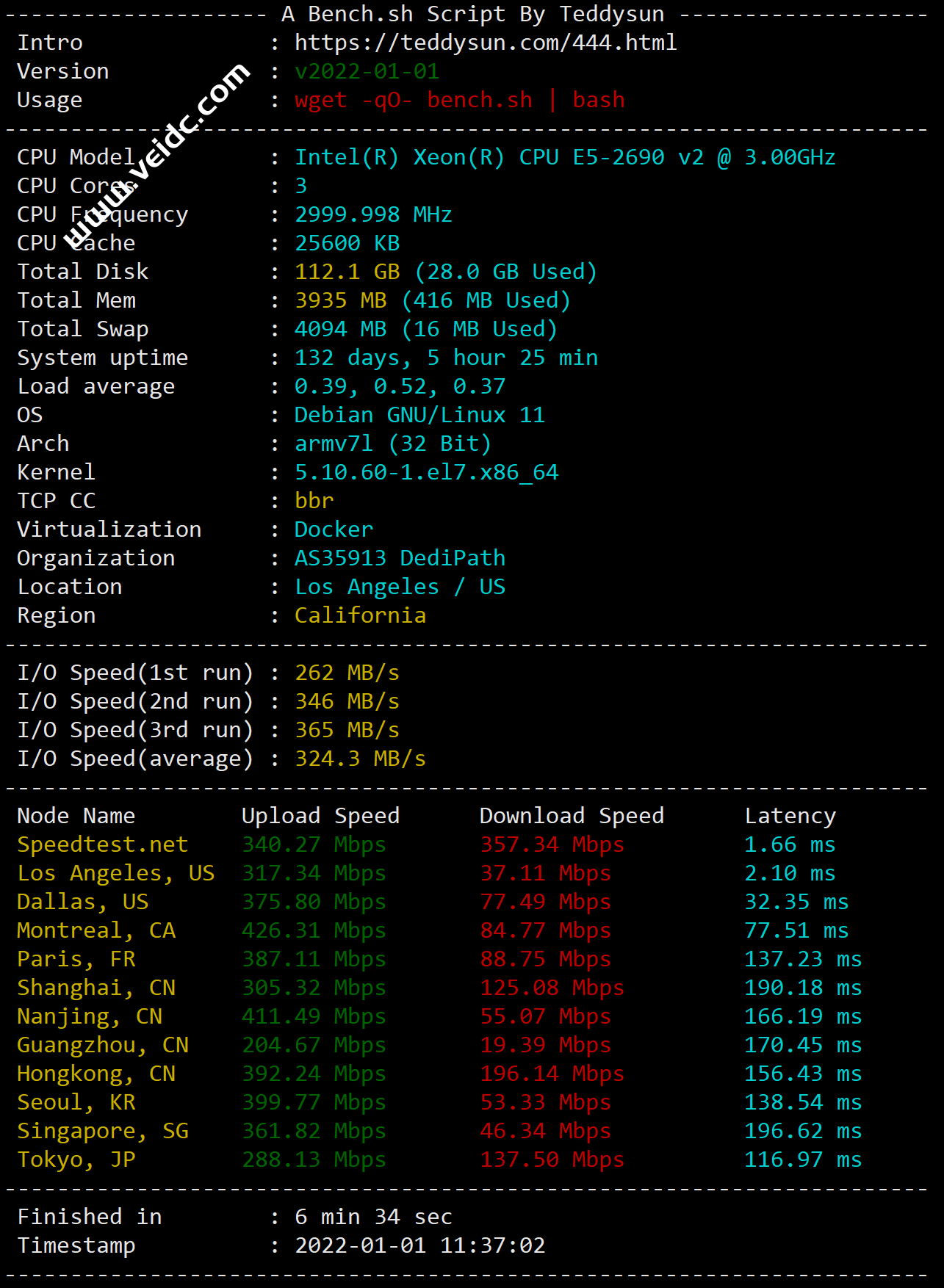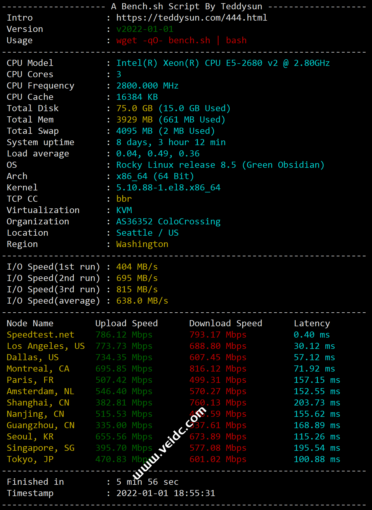 再配合 unixbench.sh 脚本测试,即可全面测试 VPS 的性能。