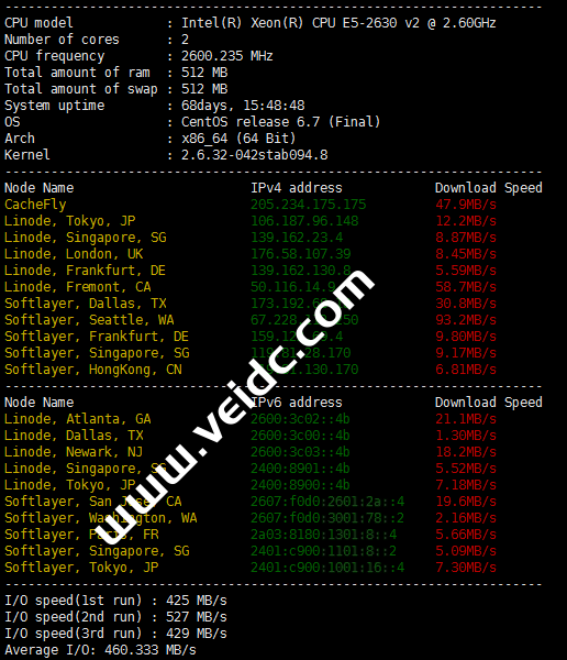 下图所示的是我的 Vultr 的评测数据: