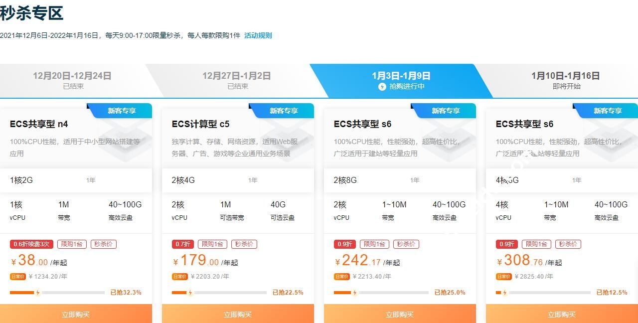 阿里云的营销路子真的比较套路,双十一的时候促销力度不够明显,后来的优惠活动力度反而比之前的力度大,大公司的营销策略思维和我们普通人不同。现在正值年终,我们看到阿里云服务器商发布年终ECS特惠活动,年付ECS服务器居然做到首年38元,这个价格比之前腾讯云48元还要低。活动截止到12月31日。活动包括爆款秒杀、新人、老用户等,这次给老用户的力度还是比较大的。