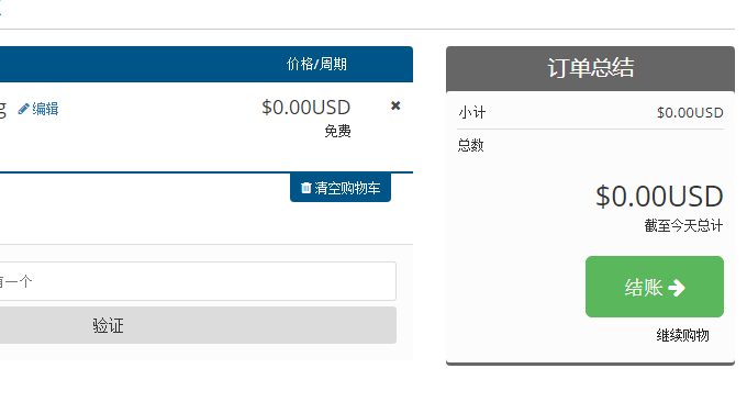 进入到虚拟主机结账页面。