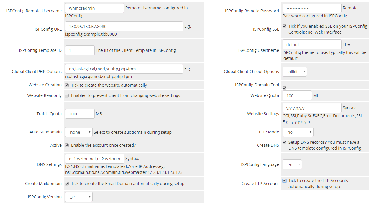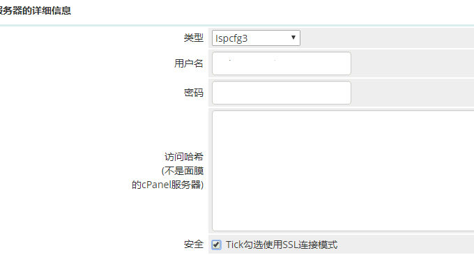 安装WHMCS Module for ISPConfig。官网:http://www.github.com/cwispy/ispcfg3,备用:https://github.com/freehao123/ispcfg3,在modules/servers/新建一个ispcfg3文件夹,将ispcfg3.php放在里面。