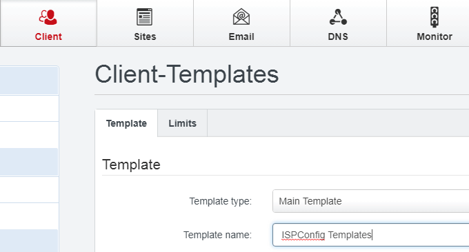 接着到ISPConfig的用户管理界面中,添加一个模板。