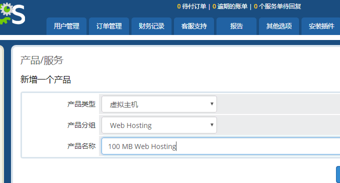 添加产品。到WHMCS设置中添加产品,产品分组是虚拟主机。