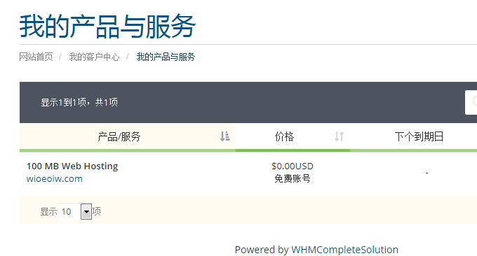 在WHMCS中可以看到虚拟主机产品开通。
