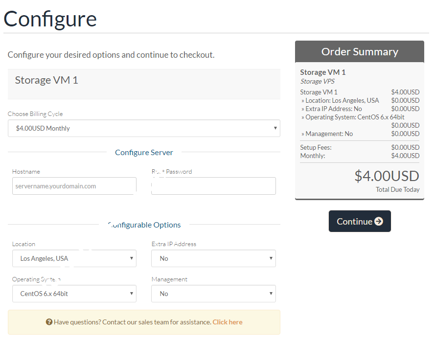 输入主机名随便写,root密码和上次一样,是控制面板的密码不是root密码(root密码邮件给你)。在确认页面可以选择数据中心(日本/新加坡加5美元,其他6个是原价),是否增加IPV4地址1个1美元/2个3美元/5个10美元,以及是否需要人工管理服务(每月10美元),不需要就选NO。系统可以选择 CentOS 6(32&64)7(64) 、Debian 7(32&64) 8/9 (64)、Ubuntu 14.04(32&64)16/18(64)、Fedora 20(32&64)23(64)可进行这些系统的选择,选完之后点击continue进行下一步。