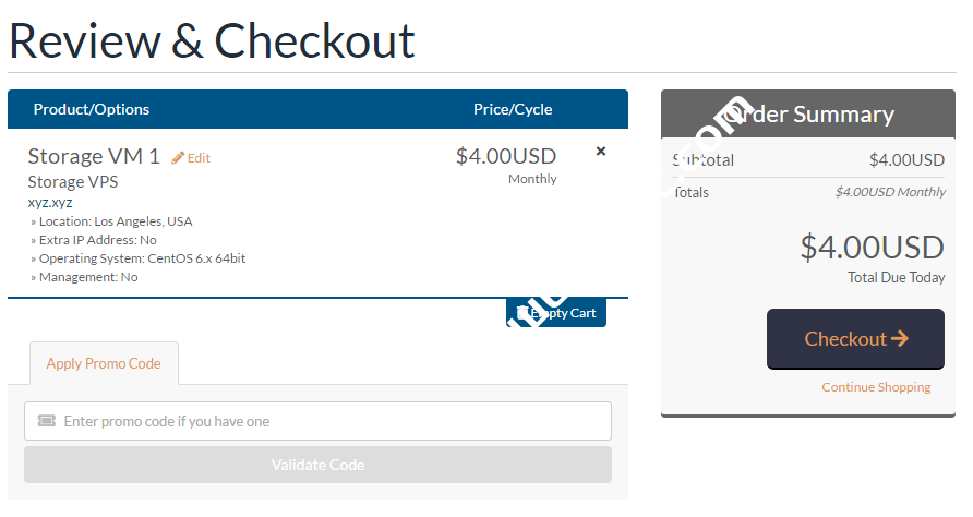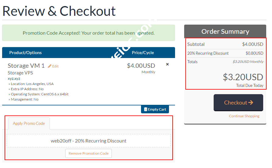 我们看到常规最便宜的就是4美元,1核512M内存30G硬盘5T月流量的(1G带宽的是5T,10G带宽不限流量,但是每月最多还是不能超过20T),我们可以使用优惠码(VMNEW),如果你是新用户那么首月首次下单可以打6折,省掉40%只要2.4美元。同样你也可以使用另一个优惠码打8折,省掉20%只要3.2美元。