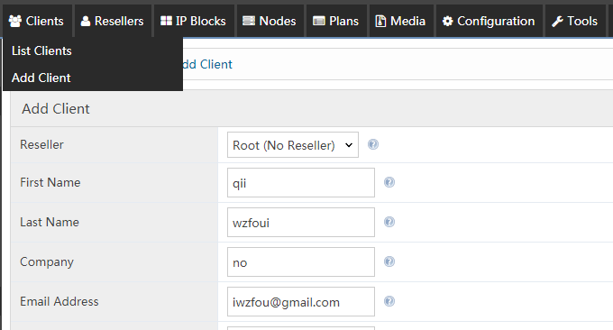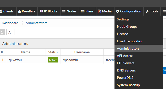 登录了SolusVM第一件事就是修改管理员默认的密码,这个修改密码是在设置-管理员可以找到。