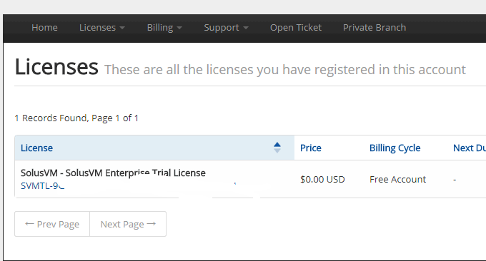 刚刚上面也讲到了,SolusVM是一个付费的软件,你需要到SolusVM官网去购买一个授权,不过SolusVM现在免费提供一个月的试用授权,可以直接在线申请。