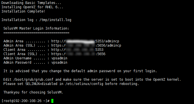 安装了SolusVM后,你可以看到这样的提示: