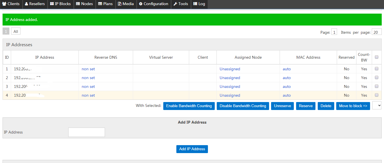 IP添加成功后,你也可以在IP列表可以看到有哪IP是没有被分配的,哪些是可以使用的。