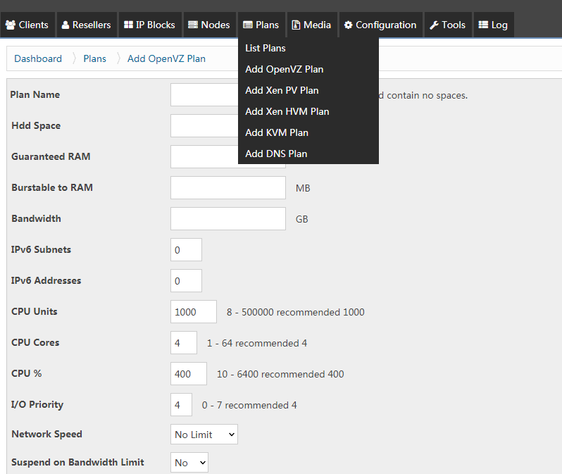 SolusVM就相当于是Cpanel/WHM这一套软件,它可以帮助你实现服务器虚拟化,创建管理新的OpenVZ, KVM和Xen VPS主机,可以添加不同权限的账户,为不同的用户设置VPS的带宽、内存、CPU、硬盘等配置,同时上传安装OS模板。