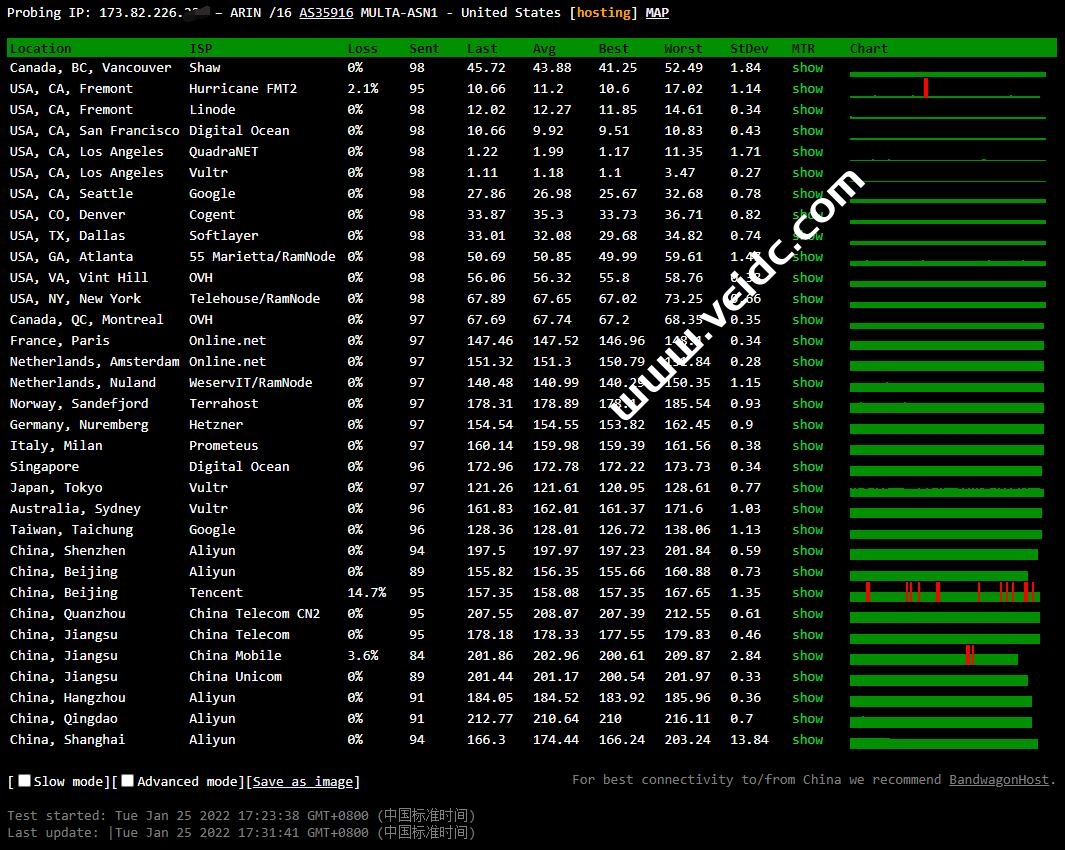 全球PING及丢包率测试: