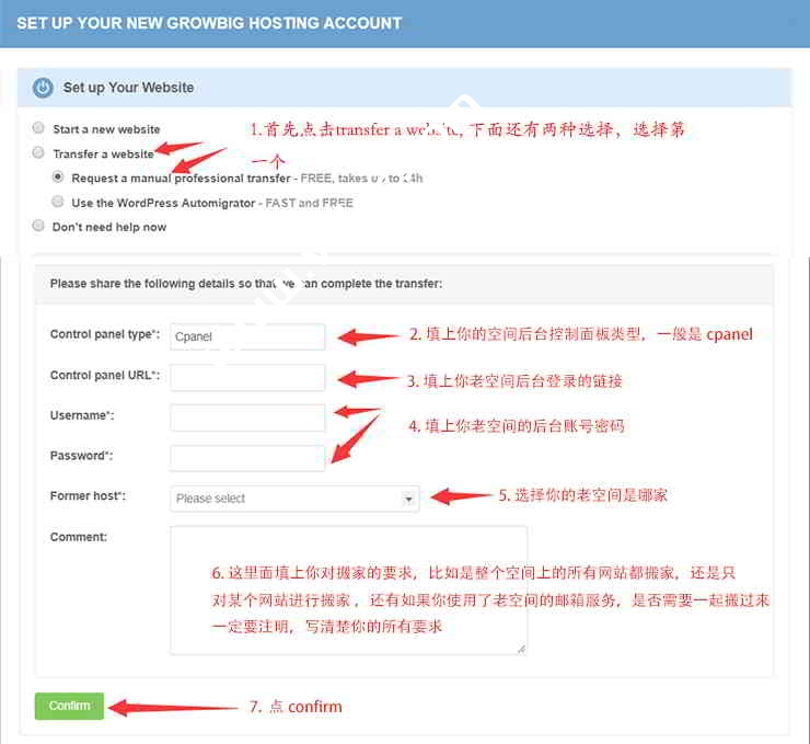 Comment(注解):在这里你必须写下需要注意的地方,包括你要迁移的网站,是1个还是2个,必须说明清楚。
