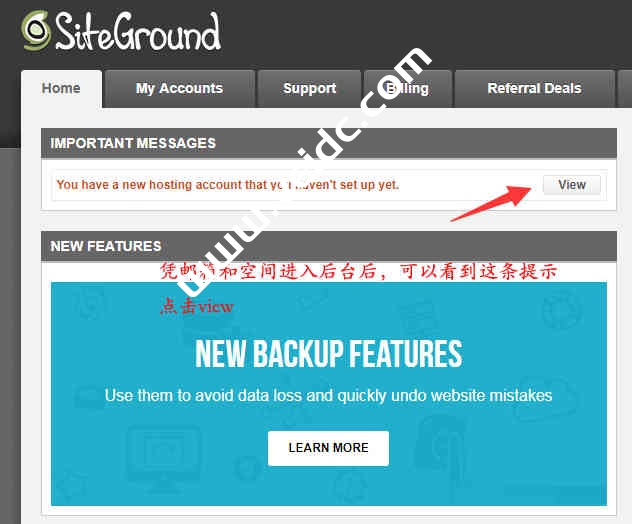 第 1 步:登录SiteGround后台,点击进入SiteGround官网