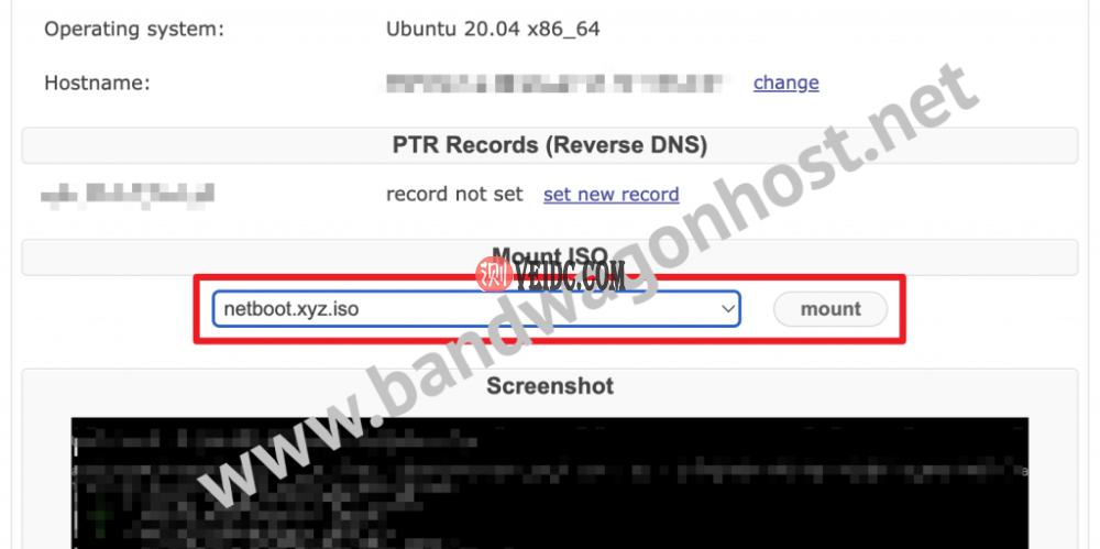 在使用 netboox.xyz 前首先需要挂载镜像,在挂载的时候选择 netboot.xyz.iso,点击 mount 进行挂载,如图所示。