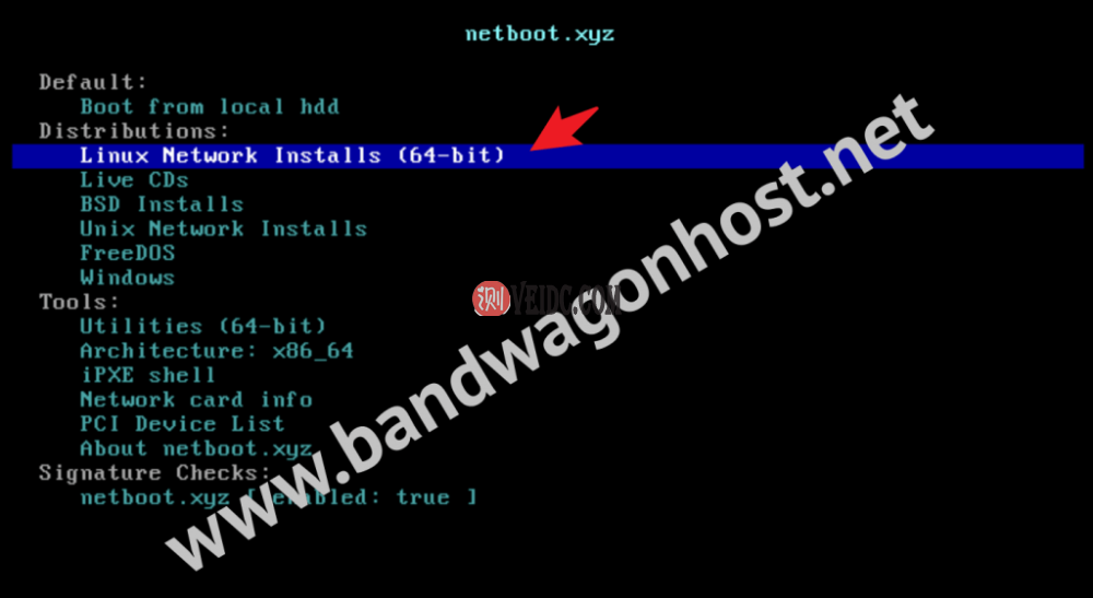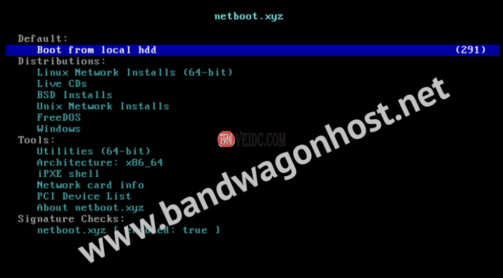 近日搬瓦工挂载镜像新增了一个 netboot.xyz.iso 的镜像,谷歌搜索了一下,发现 netboot.xyz 是用来通过网络引导重装系统的。挂载这个镜像之后可以一键重装很多系统,包括常见的 Ubuntu、CentOS 等,还有其他 Linux 发行版比如 Arch Linux、Gentoo,甚至还有华为的 openEuler,支持镜像非常多。此外也可以重装为 Windows 系统。