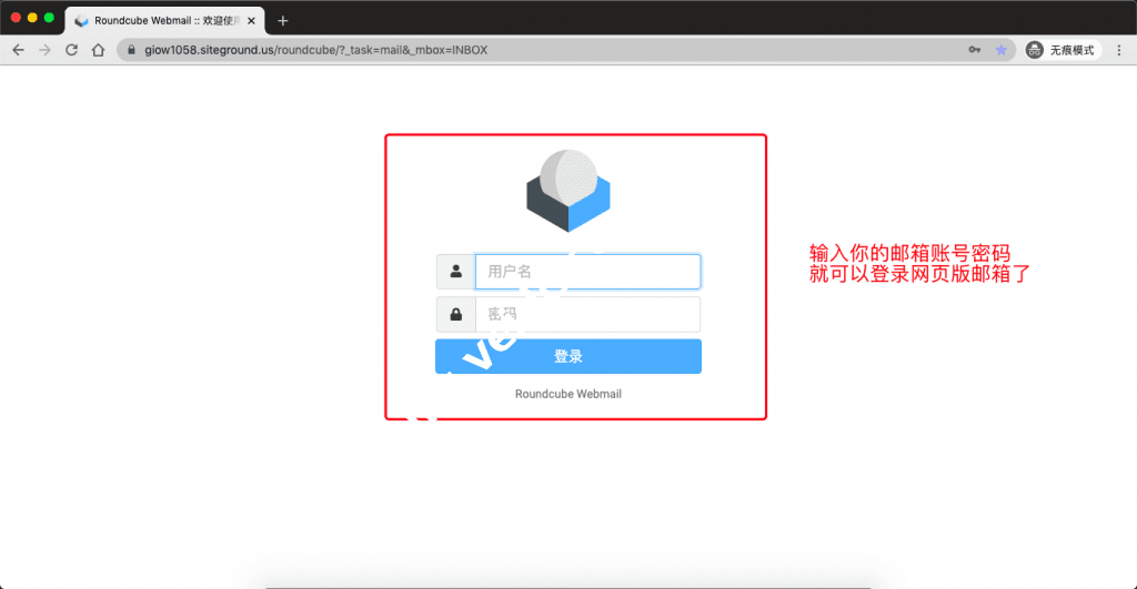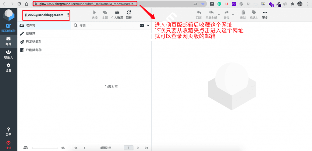 从Siteground后台进入网页版邮箱后只要收藏当前网页版邮箱网址到收藏夹下次就可以直接登录网页版邮箱而不用在登录Siteground后台了。