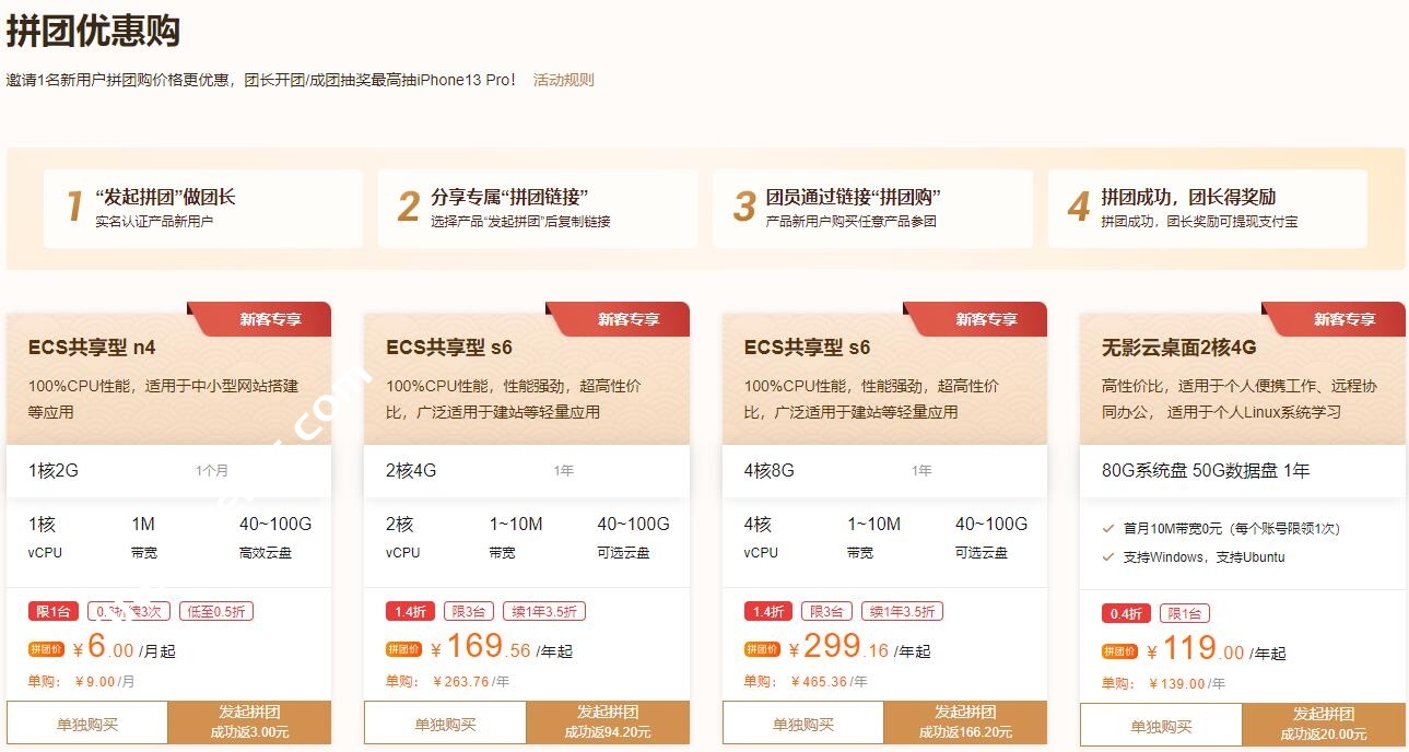 邀请1名新用户拼团购价格更优惠,团长开团/成团抽奖最高抽iPhone13 Pro