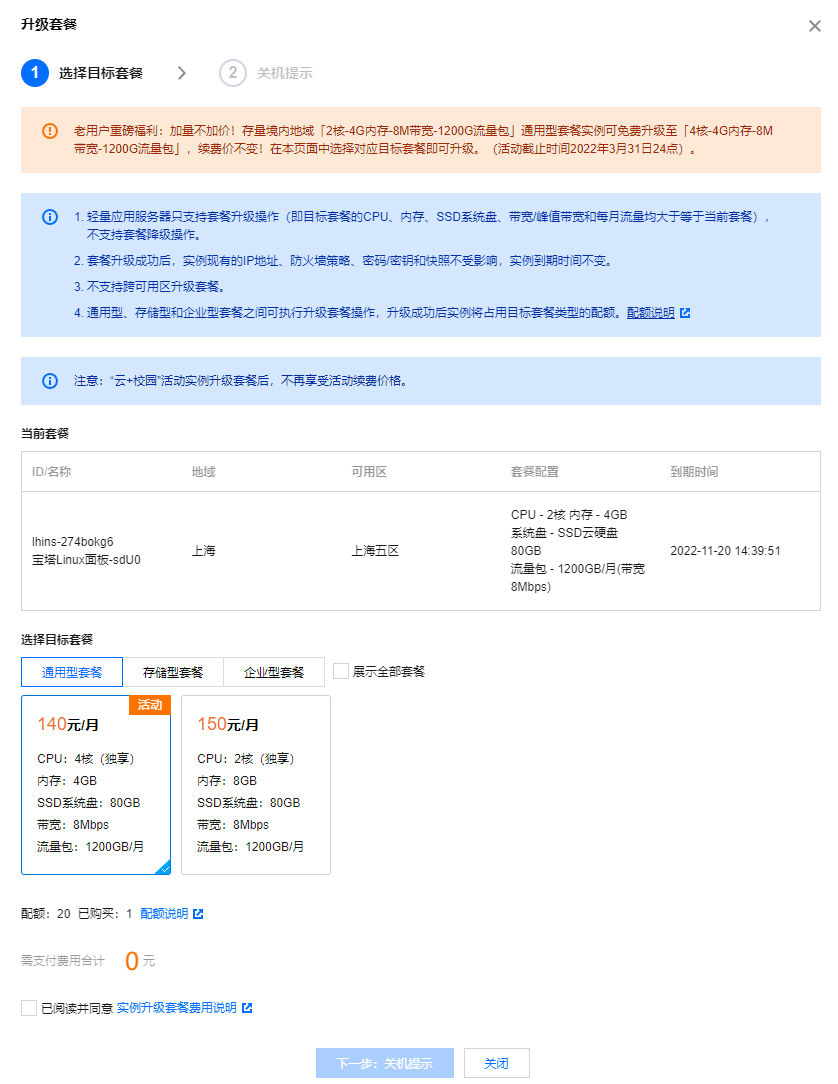 应该是有效期多久就升级到多久,走过路过不要错过!老杨刚刚了把自己在用的一台升级了。不要加钱,腾讯云确实挺良心。