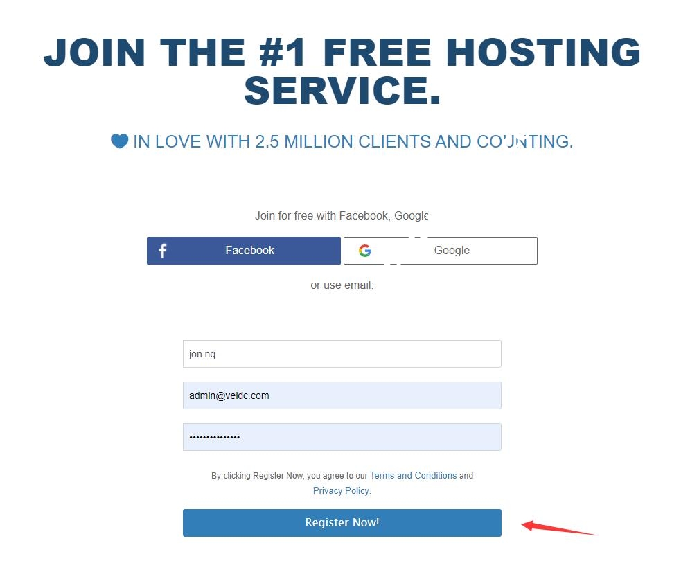 然后输入英文名称、邮箱、密码,点击“Register Now!”按钮提交: