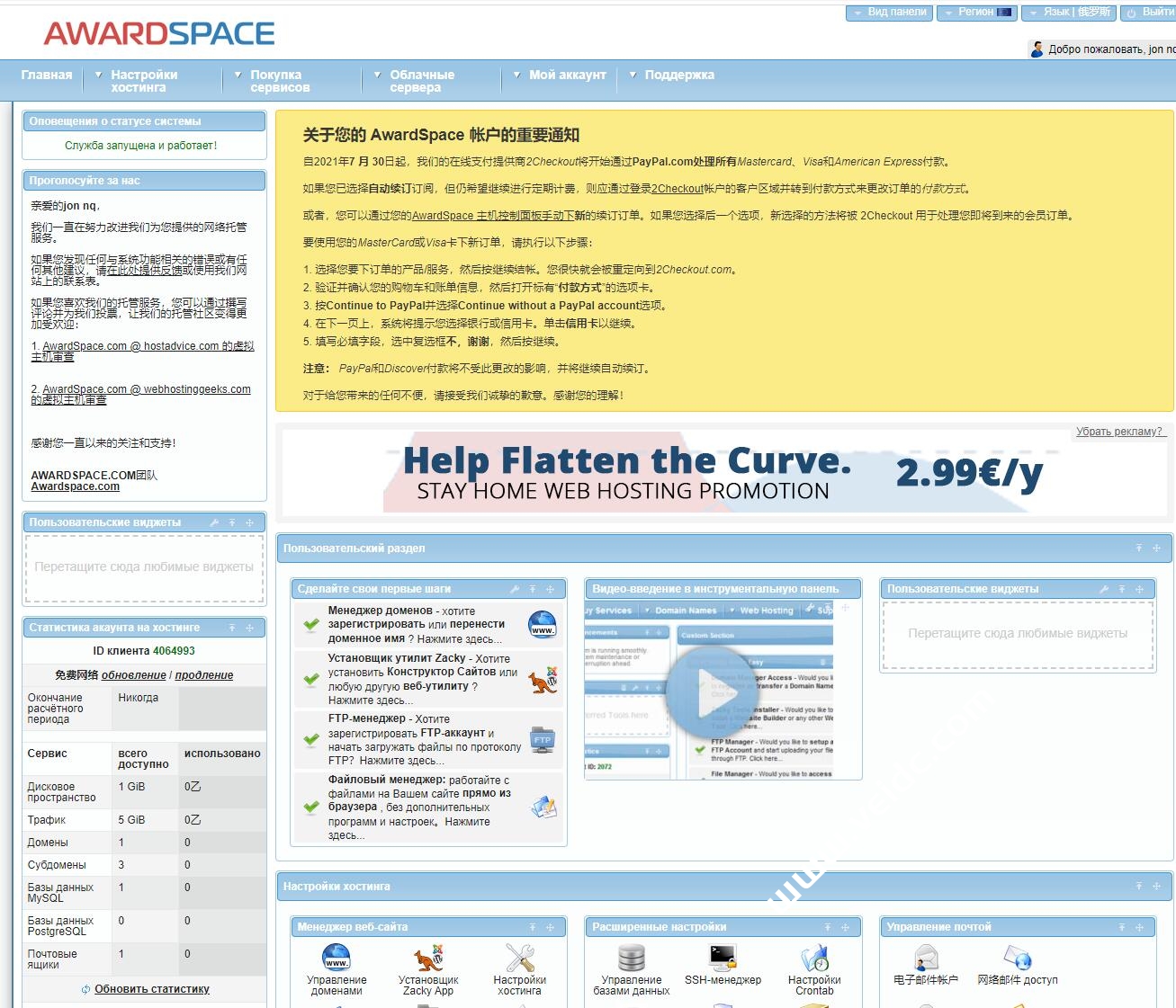 虽说AwardSpace虚拟主机空间是免费的,但是空间大小只有1GB,如果是正规使用还是建议使用付费虚拟空间吧,毕竟免费虚拟主机只能个人玩玩而已,真正使用还是有很多限制的,毕竟天下没有免费的的午餐。、
