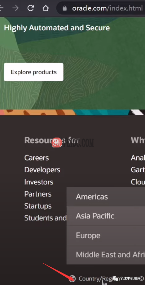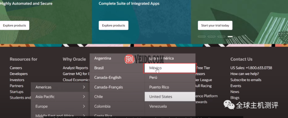 3.访问Oracle的官网,拉到最下面地球标志切换成墨西哥