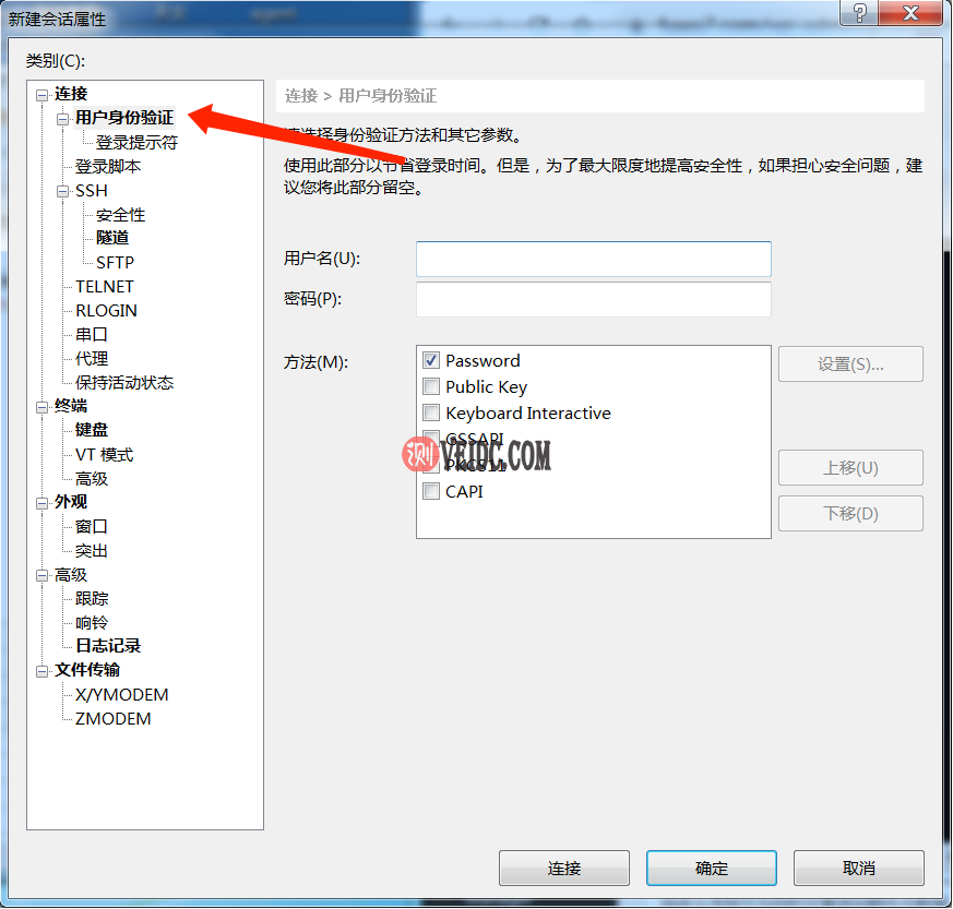 填写完成后,点击左侧的”用户身份验证”,点击后填写服务器的用户名和密码,填写完成后点击下方连接,就可以直接连接到服务器。