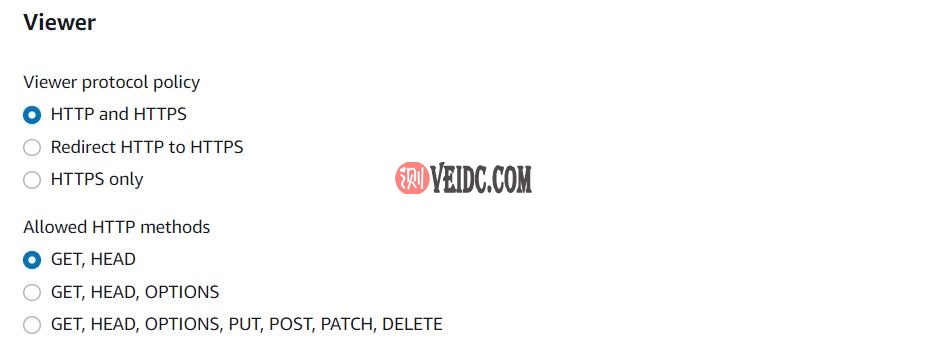 接下来Viewer protocol policy也跟第一步一样根据你对外访问需要决定是否将HTTP跳转到HTTPS;Allowed HTTP methods为允许的请求头,同样根据实际需要选择,无法明确判定自己需要直接选择第三条全部支持即可。