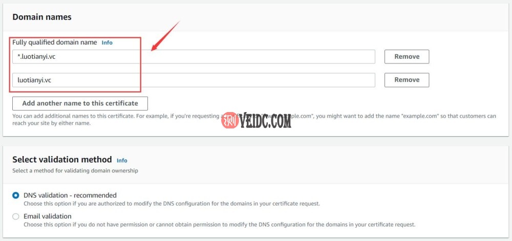 这里推荐签发Amazon的证书,有效期395天且支持泛域名。如图填入自己的域名,选择合适的验证方式添加对应的记录即可,验证完成后很快就能够签发成功。