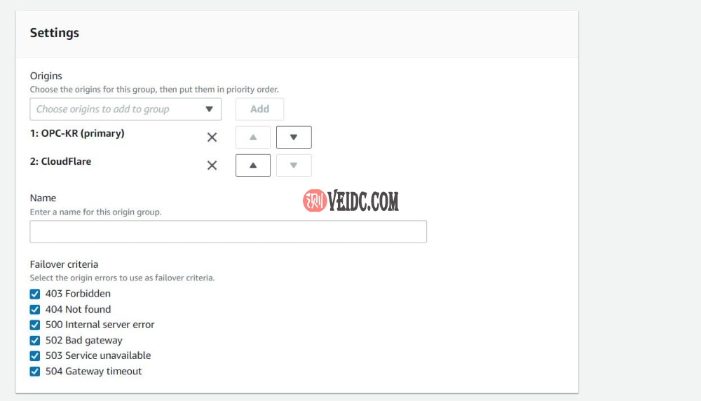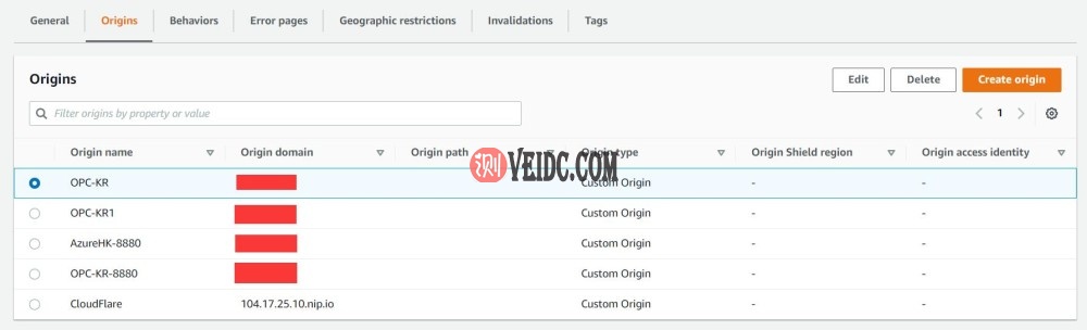 在这里可以添加多个源站,如图在右上角点击Create origin可以创建新的源站。