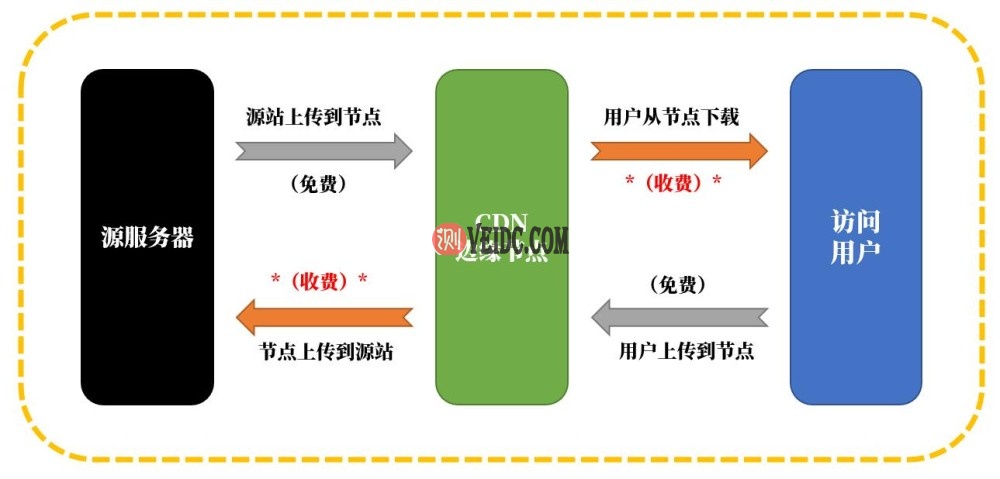 CloudFront的免费额度是每月1T流量和1000万次请求,计费项目包括HTTP请求、HTTPS请求、节点发往源站流量、节点流出到用户四部分流量,对于流量计费的理解如图所示。