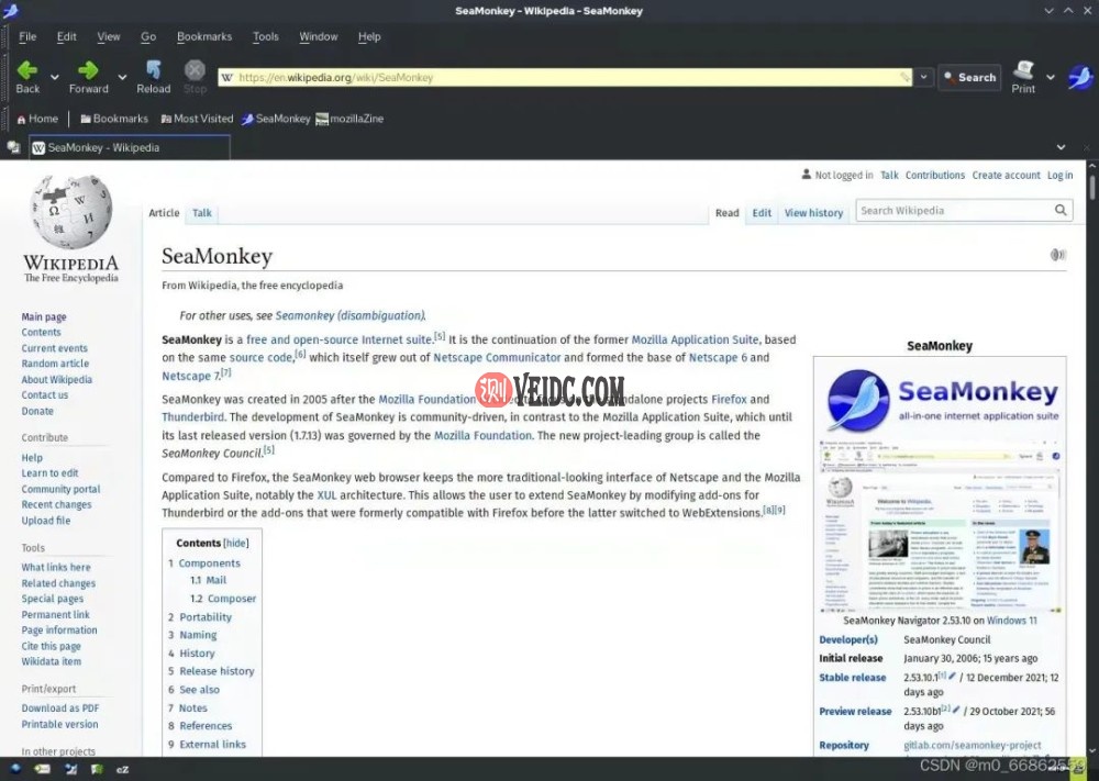 SeaMonkey (海猴)是一个一体化导航器,该浏览器包含了电子邮件客户端、Web 订阅阅读器、HTML 编辑器、IRC 聊天和 Web 开发工具等特性。海猴是一个令人难以置信的 Firefox 分支,就像 Librewolf 一样。正如其网页所说,它使用了大部分相同的 Mozilla Firefox 源代码。