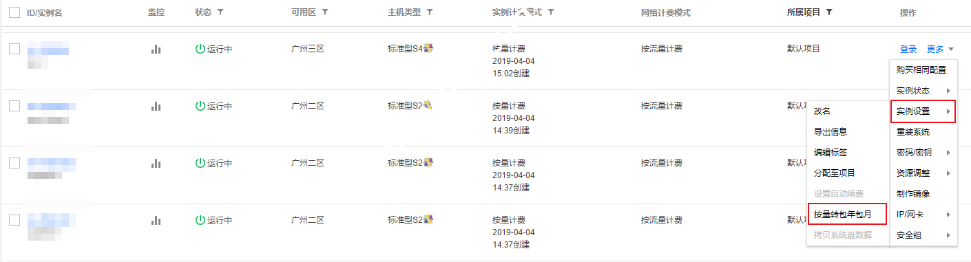 - 支持单个和批量按量实例转换成包年包月实例。