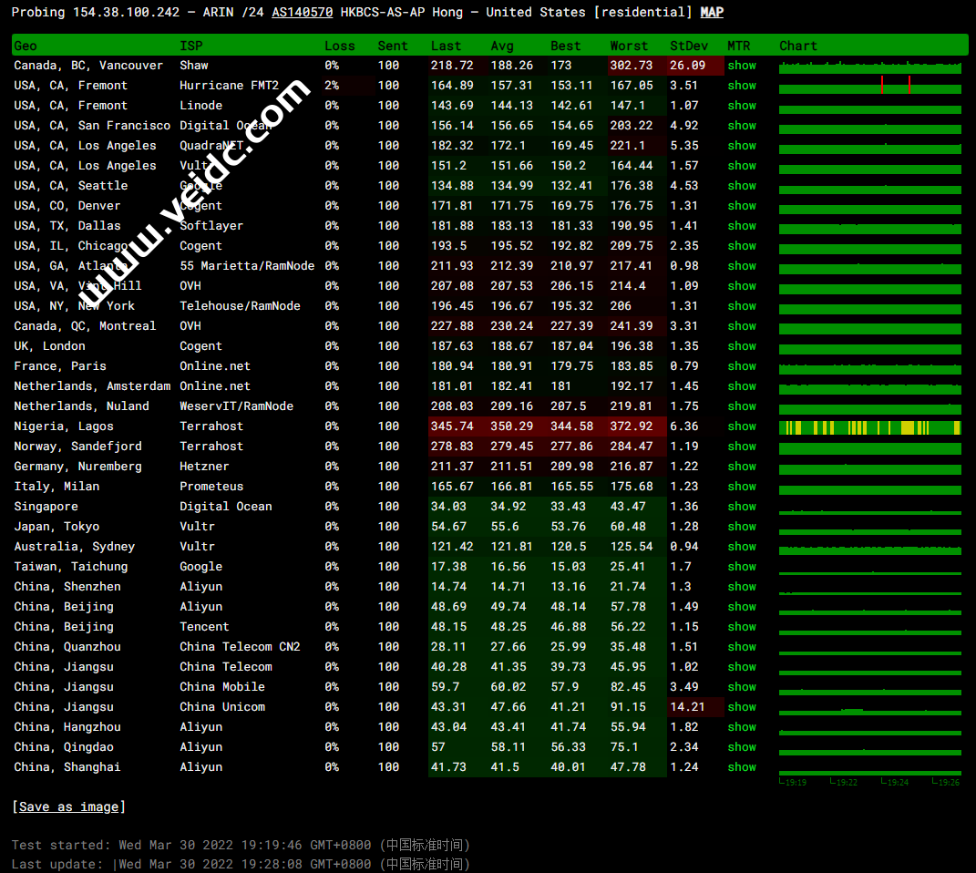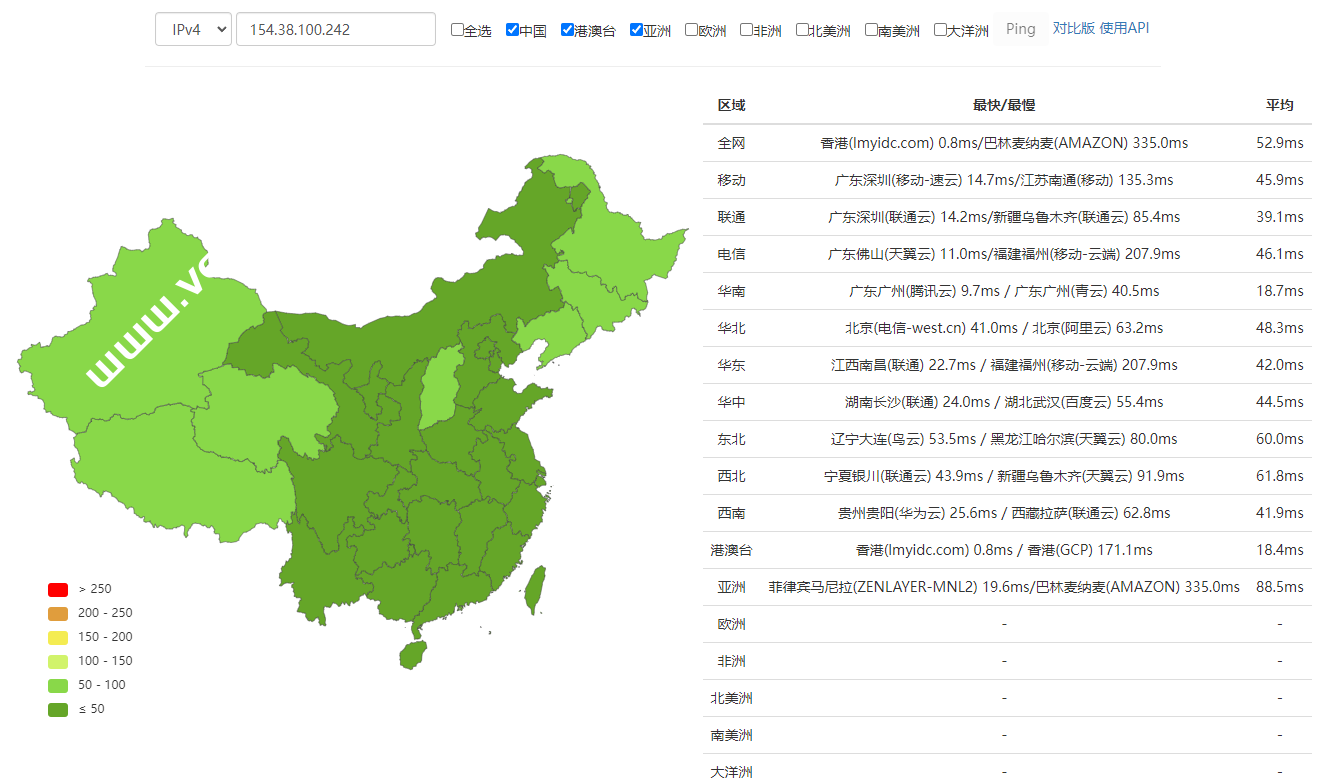 全球PING以及丢包率测试: