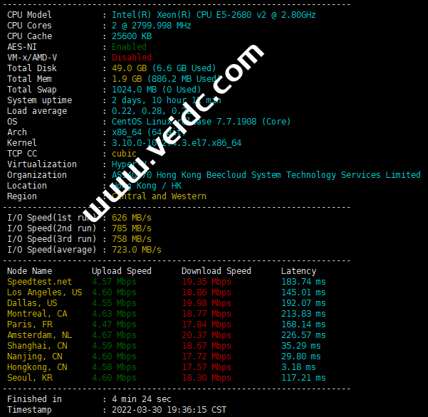 香港CN2 GIA 云服务器测评,以下配置为2H2G5M。