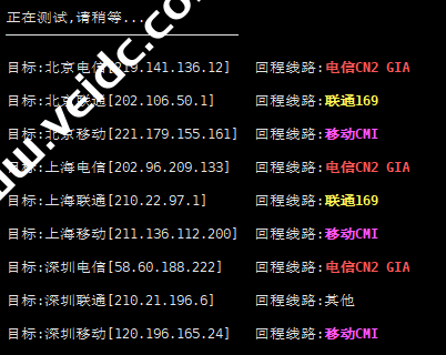 回程 国内三网路由测试: