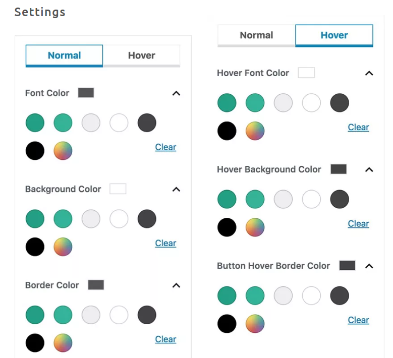 默认的【按钮】功能颜色变化效果基本是固定的。但是[Advanced Button] 高级按钮可以自行定义正常的颜色颜色、Hover(鼠标悬浮)时的颜色样式: