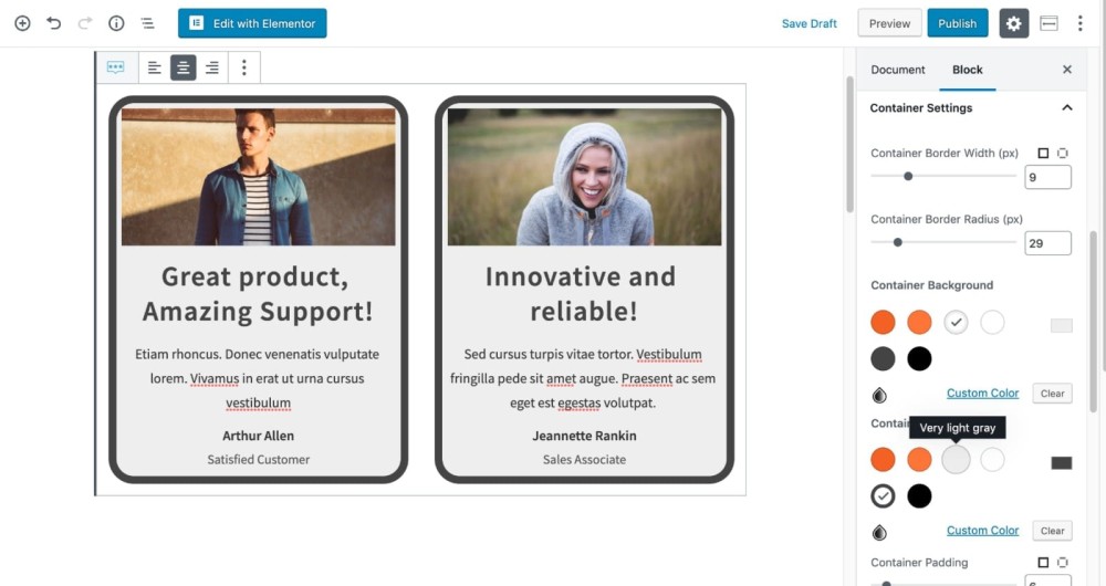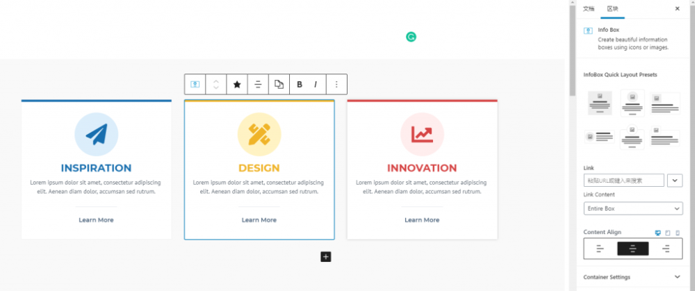 这个板块也是 Kadence Block 独有的一个功能。在默认的古腾堡编辑器中是无法实现的。