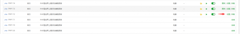 找到对应版本的PHP控制面板:宝塔后台 > 软件商店 > 搜索 “php” > 找到对应版本PHP > 设置