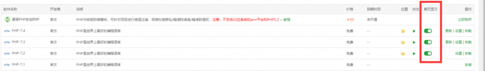 推荐:将对应版本的PHP面板加入到宝塔首页。方便后续管理。