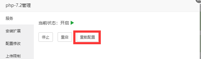 重新加载PHP配置:服务 > 重载配置