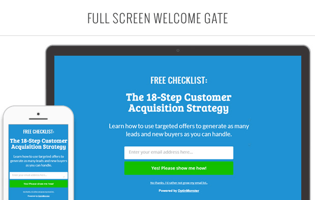 你所要做的就是在访问的页面上设置一个跳出的欢迎页面—仅有一个号召性用语(CTA)来覆盖整个屏幕,因此用户一开始只看到一个选项,减少了用户选择从而进行转化。