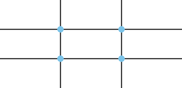 根据规则,四个交叉点是兴趣点。当对象放置在这些点上时,它会显示出最具影响力的效果。