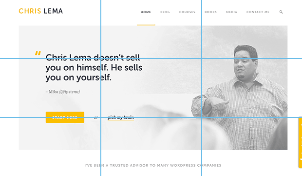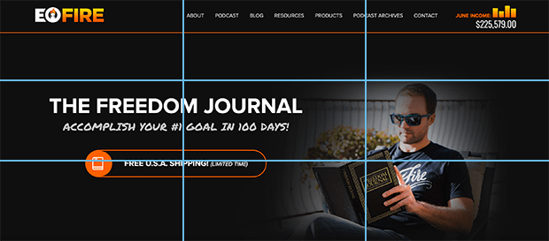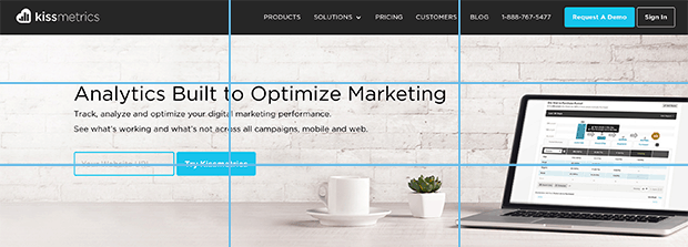 例如,以下网站的banner在两个交叉点上有最重要的元素(推荐和CTA按钮):