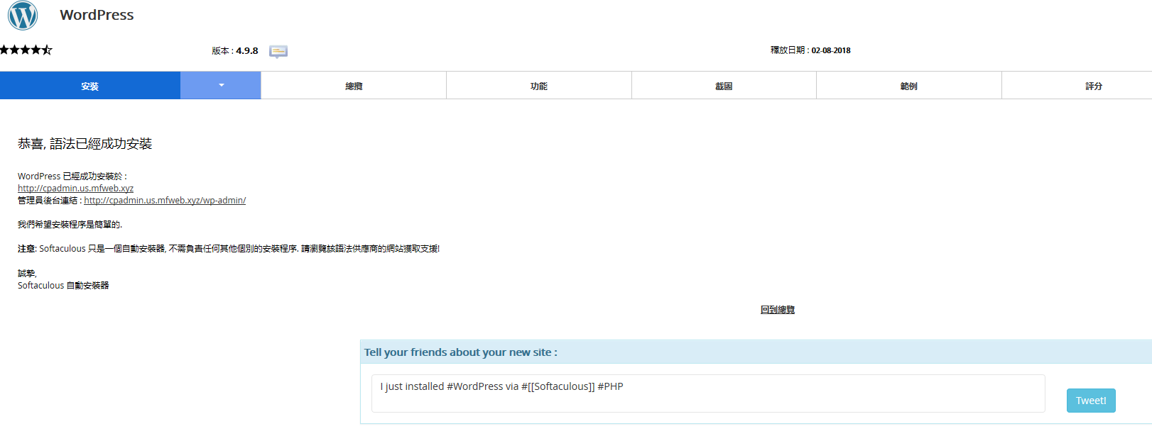 我们的cPanel免费主机和plesk主机都提供内置一键安装WordPress博客功能。控制面板功能都非常强大。下面来了解一下: