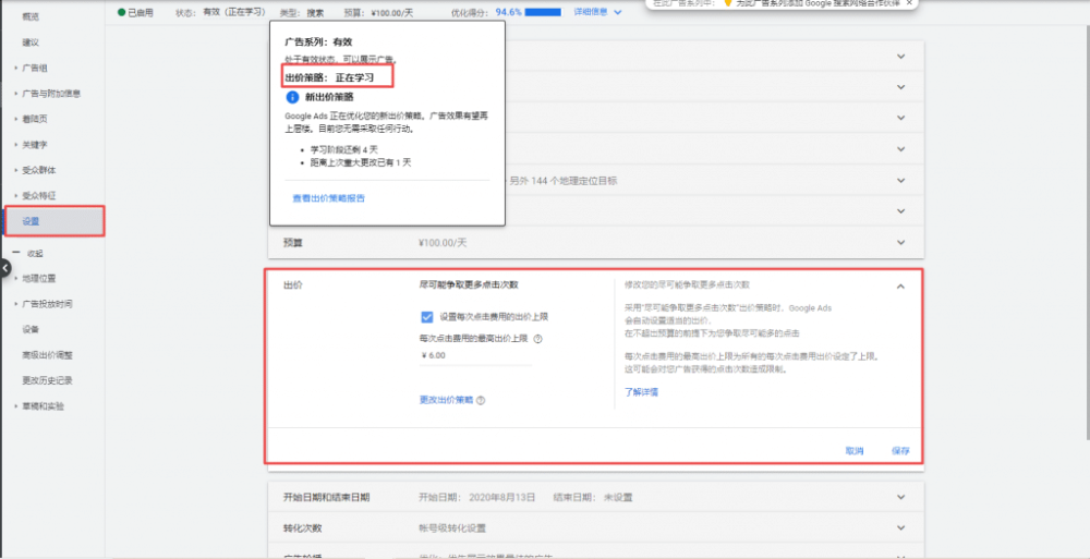 因此,谷歌的任何一个智能的学习都是需要时间的,一般是以5天为一个循环,注意这五天里,预算不能断,也不能做过多的更改(尤其是出价方面),但是像添加否定词这类的维护性操作则不影响效果。