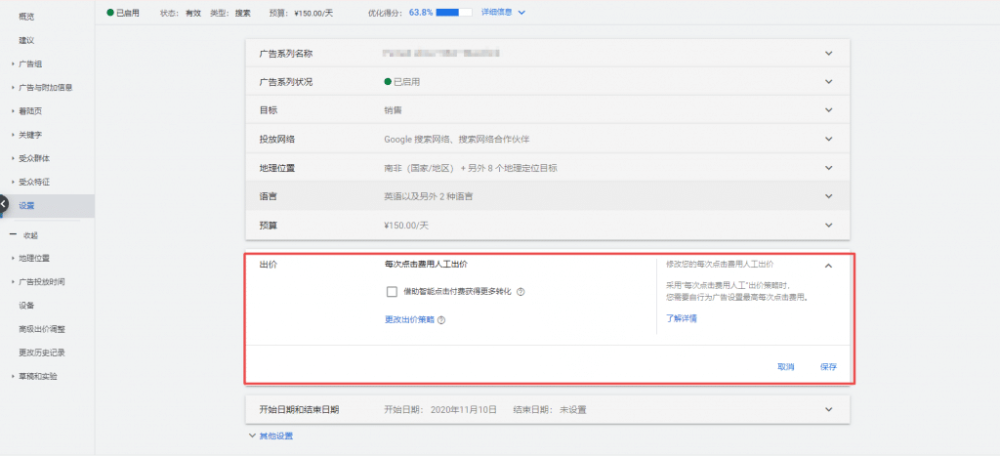 如果你的该广告系列是一个比较稳定的阶段,那么会稍微麻烦一些。比如你之前设置的是按转化次数出价,结果不小心设置成了按点击出价,并跑了一段时间(谷歌已经开始学习)。那么你需要把出价方式先切回“人工出价”: